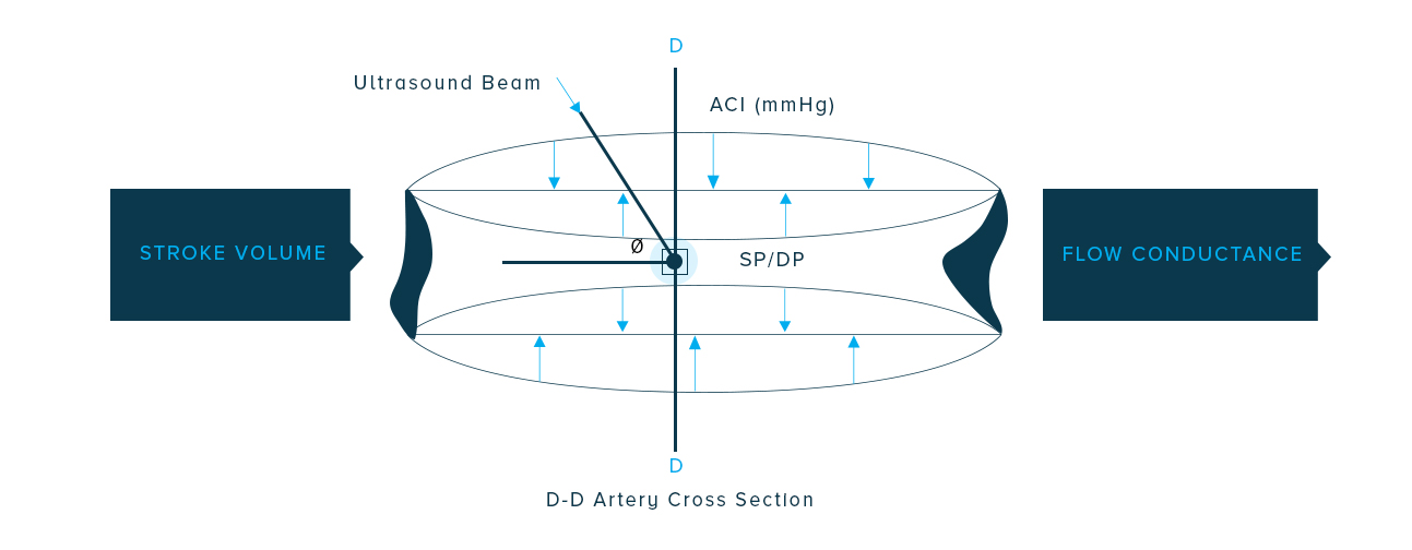 Using blood flow velocities from the artery signature waveform, with systemic blood pressure, all hemodynamic variables such as forward and reflected pressure waves, shear stresses on the artery walls, and flow dynamics are incorporated.